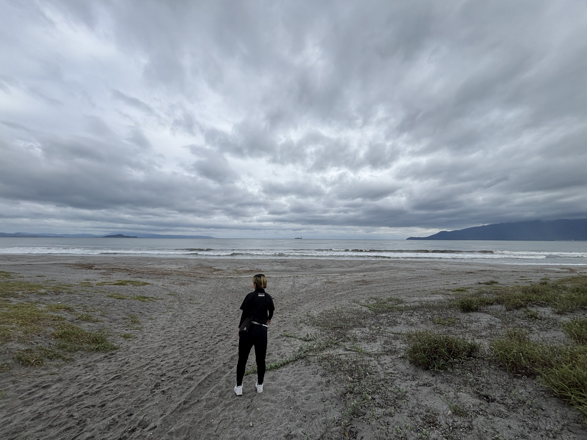 国内屈指の陸上トレーニング施設「ジャパンアスリートトレーニングセンター大隅」(県所有、指定管理はミズノ)、横瀬古墳、くにの松原クロスカントリーコースを巡って、最後に国内最大級のビーチスポーツ専用競技場へ。