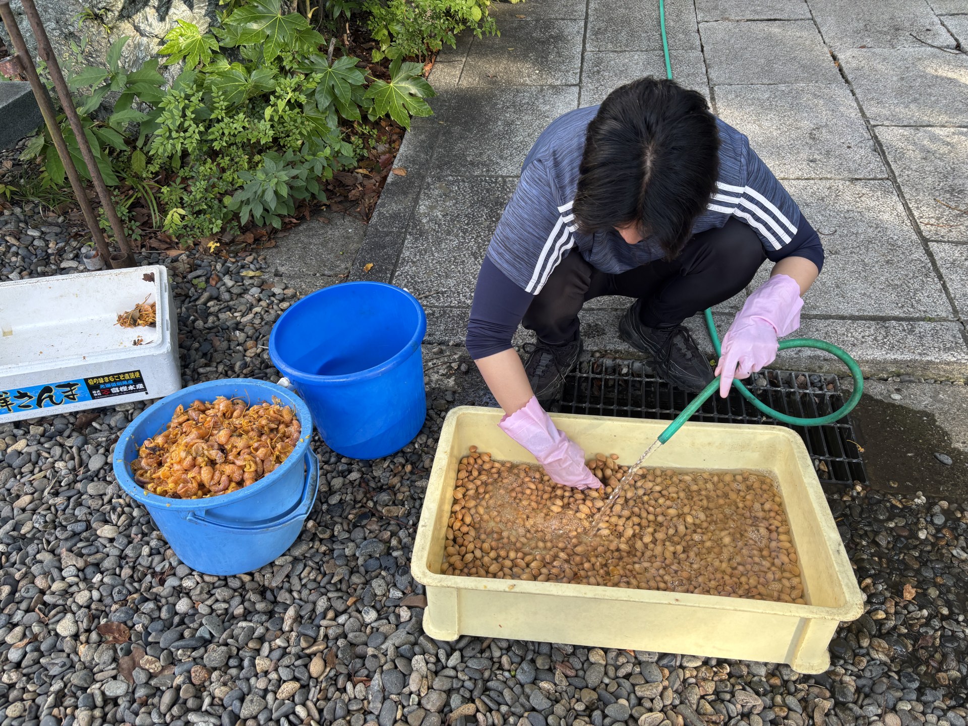 おついたち市に向けて、ギンナンの処理をせっせと進めた。