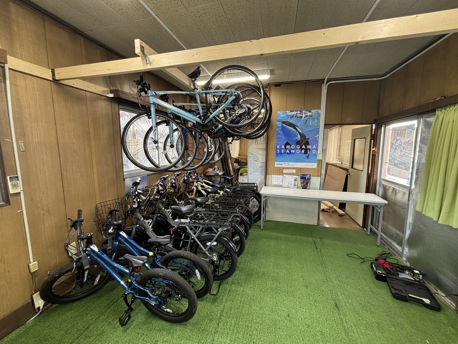[写真:鴨川駅前案内所内に完成したサイクルラック!